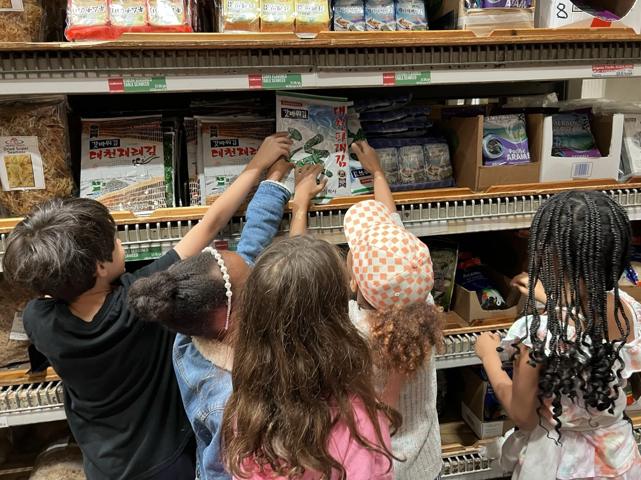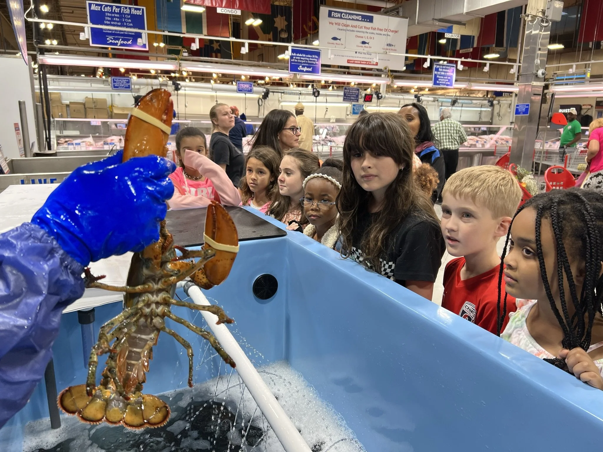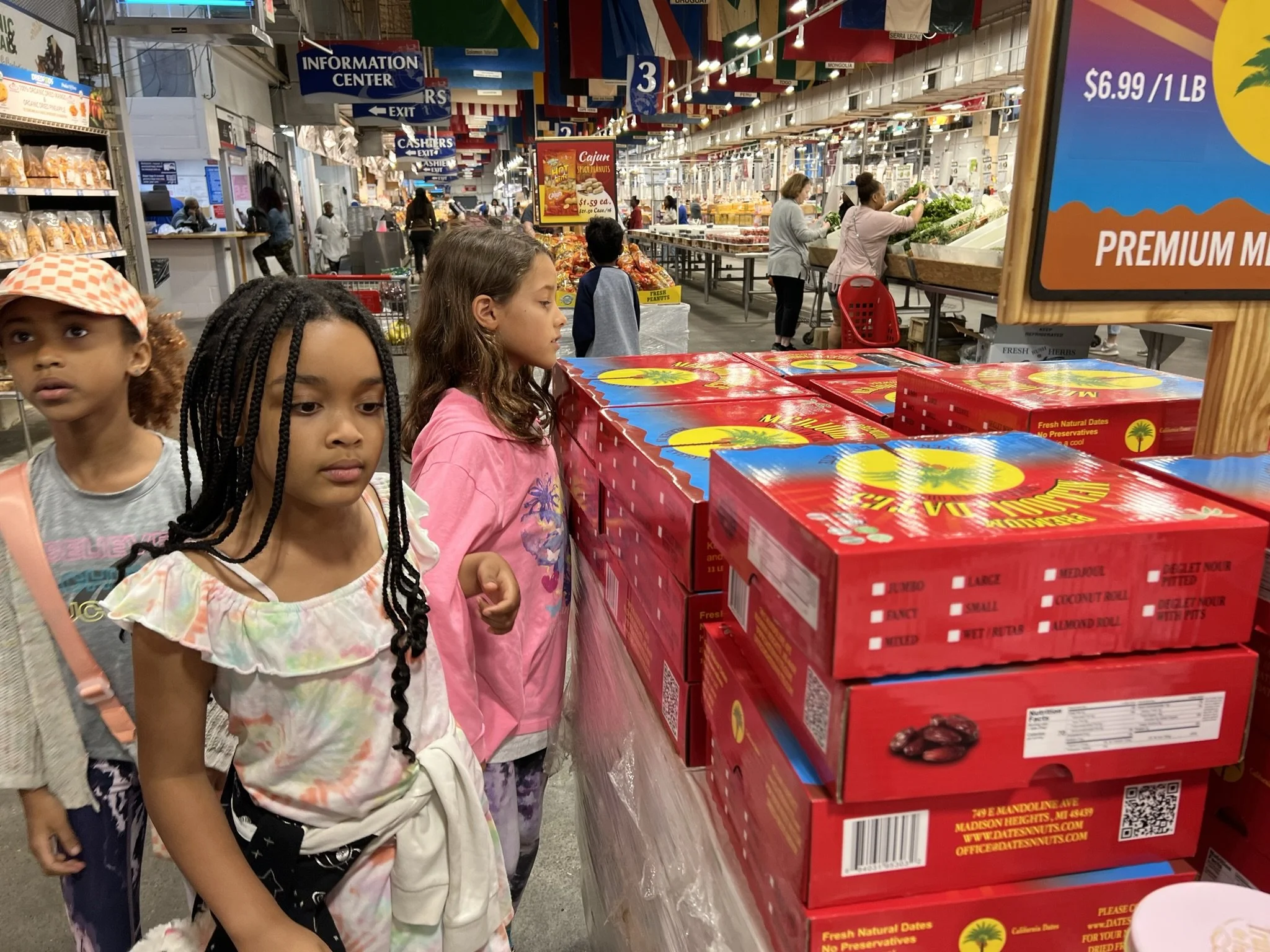 The second and third graders explored Your Dekalb Farmers Market today in an immersive, active field trip. We started with a tour to introduce us to the many varieties of foods, spices and plants from all over the world. So many fun finds! Each student brought money to spend, so they started to plan for which items they could purchase within their budgets. Our guides explained how the market indicates country or state of origin, showed us where to find the prices, and helped the students find specific items they needed for their assignments. A close-up look at the live lobsters and crabs was a highlight!